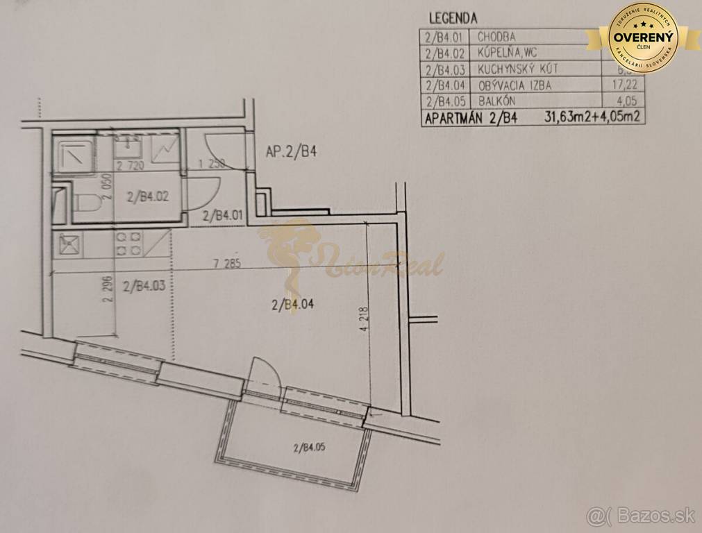 Výmera 34,3 m2 vrátane balkóna, nachádza sa na 1.p./3 s výťahom.