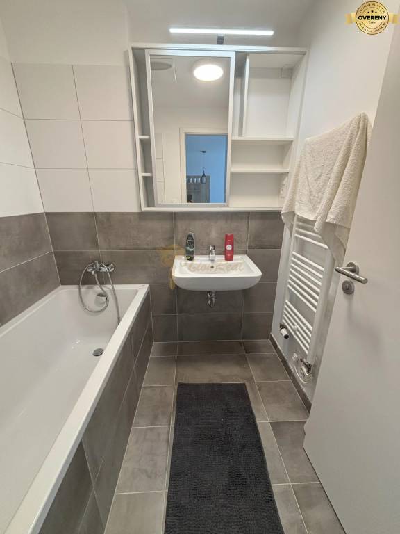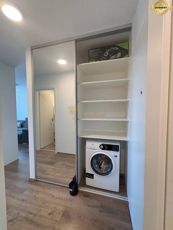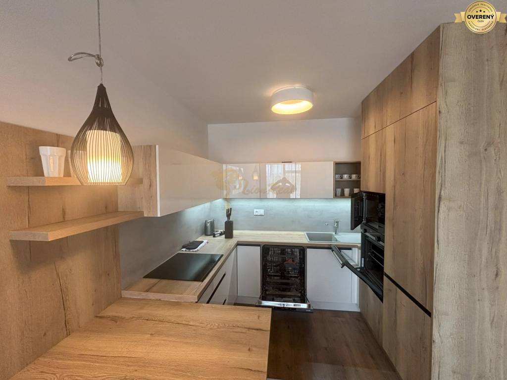 Dispozícia pozostáva: Obývacia izba je spojená s kuchyňou a predsieňou . Spálňa je samostatná ako aj kúpeľňa a WC, tak ako je to zobrazené na priloženom výkrese. Moderná kuchynská časť je komplet vybavená kvalitnými elektrospotrebičmi (AEG, Siemens, Bosch) ako aj všetkým potrebným (riad, hrnce, príbory...). Kúpeľňa je vybavená vaňou a elektrickým radiátorom s termostatom. Samostatné WC je so závesným WC a autom. odsávaním. Práčka je situovaná v predsieni. Byt je vybavený nadčasovým osvetlením jednotlivých miestností, modernou sedacou súpravou s odkladacím priestorom a príležitostným spaním. V spálni je samozrejmosťou king size posteľ so zdravotnými matracmi a lamelovými roštami. Celý byt je zariadený veľkorysým odkladacím priestorom formou vstavaných skríň. Do bytu je privedený optický internet a Telekom.
