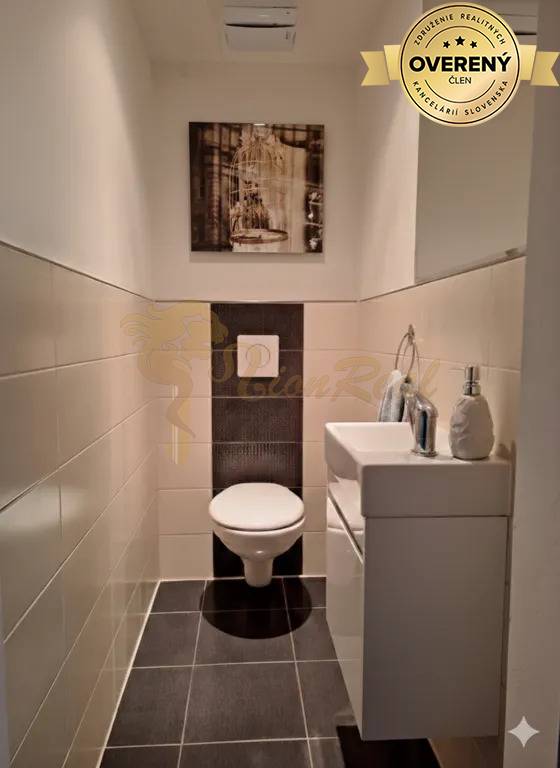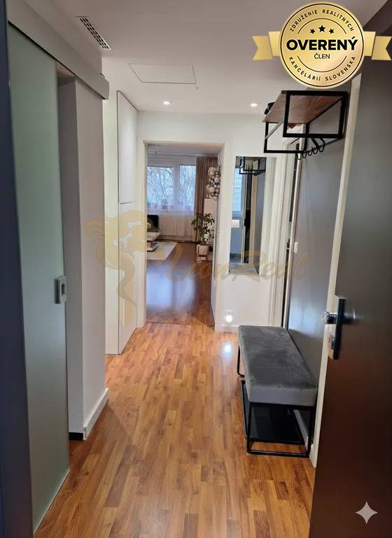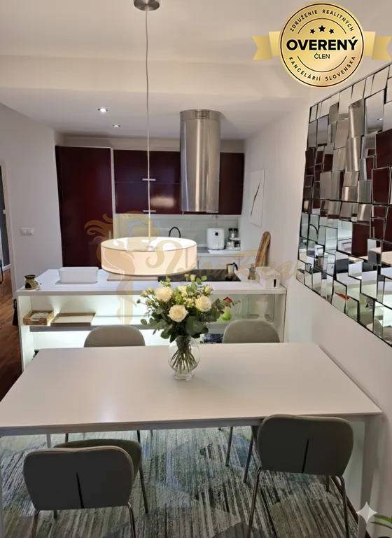 Stav bytu: po rekonštrukcii/udržiavaný . Byt prešiel dispozičnou úpravou, vďaka ktorej je efektívne využitý každý meter štvorcový. Byt je vybavený klimatizáciou. Kuchyňa je vybavená kuchynskou linkou a spotrebičmi . Kúpeľňa disponuje vaňou, umývadlom a priestorom na sušičku prádla. Samostatné WC s umývadlom. V predsieni sa nachádza práčka vstavaná do skrine s úložným priestorom . Podlahy: , Okná: plastové, , Vykurovanie: