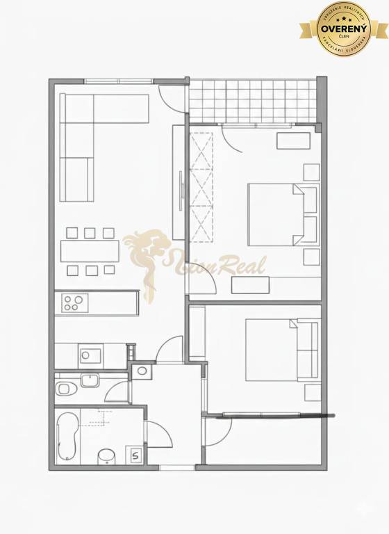 Dispozícia bytu zahŕňa obývaciu izbu, spálňu, menšiu samostatnú izbu, kuchyňu, predsieň, kúpeľňu, samostatne WC a komoru.