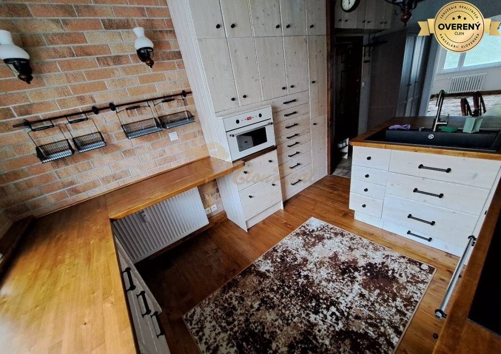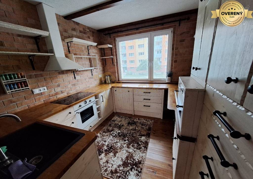 Byt je po rekonštrukcii, v byte sa nachádzajú 2 spálne, obývačka s halou a kuchyňou prepojená, kúpeľňa s vaňou, samostatné wc. V spálni je zabudovaný šatník a vstavaná skriňa, 2 spálňa má zabudovanú skriňu. V kuchyni sú zabudované/vstavané spotrebiče: mraznička, indukčná varná doska, rúra, mikrovlnka.