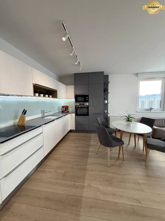 Ide o byt s celkovou rozlohou 83,52 m2, z čoho podlahová výmera bytovej jednotky je 74,69 m2 + balkón o výmere 8.83 m2. Byt je k dispozícií kompletne zariadený v vysokom štandarde s nábytkom na mieru vo všetkých miestnostiach a kvalitnými spotrebičmi. K bytu je potrebné dokúpiť dve vnútorné parkovacie miesta s elektrickou prípojkou (230V) za cenu 40.000€.