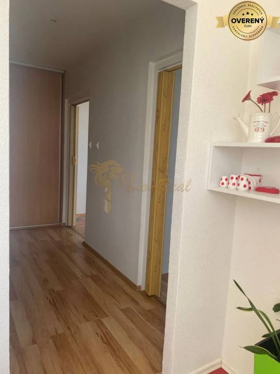 Dispozícia bytu: Byt sa skladá z predsiene a priestrannej vstupnej chodby so vstavanou skriňou, na pravej strane po vstupe do bytu sa nachádza obývačka so sedačkou a so vstupom do kuchyne so vstavanými spotrebičmi. Dve veľké izby sa nachádzajú na konci vstupnej chodby z toho jedna s lodžiou a výhľadom na mesto. K izbám sa dostanete i chodbou z kuchyne. Na pravej strane chodby sa nachádza WC a ďalej kúpeľňa. K bytu samozrejme prislúcha i pivnica 1,47x1,5 metra. Na prízemí sa nachádza i kočikáreň a spoločné priestory.