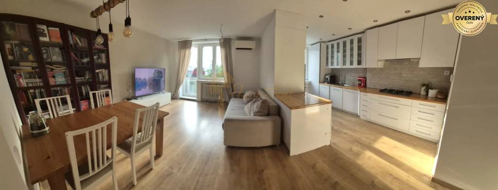presvetlený openspace obývacia izba s kuchyňou a balkónom