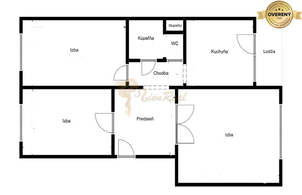 Dispozícia bytu pozostáva: 3 nepriechodné izby, vstupná hala, kuchyňa, s jedálňou s výstupom na lodžiu, kúpeľňa a WC samostatné.