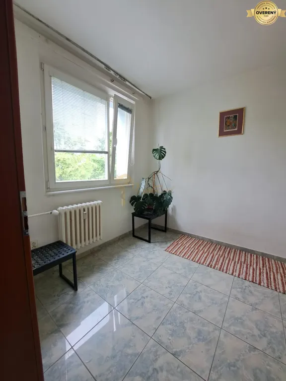 Výmera 82 m2, lodžia, nachádza sa na 4.p./4 bez výťahu v zateplenom panelovom dome. K bytu patrí pivnica na prízemí+kočikáreň.