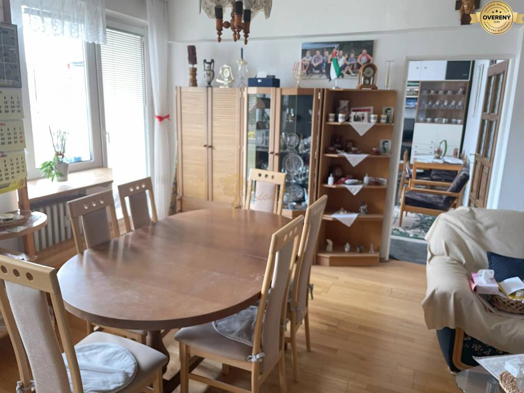 Celková výmera bytu je 90,33 m2, z toho podlahová plocha bytu je 81,8 m2, lodžia 5,93 m2 a pivnica 2,6 m2 (umiestnená na 1. poschodí domu). Byt sa nachádza na 5. posch./10, bytový dom (1973) je tehlový, zateplený, vo výbornom a udržiavanom stave s dvoma výťahmi (osobný a nákladný), s kamerovým systémom.