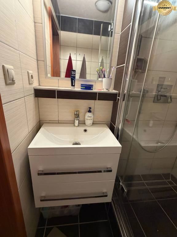 Celková výmera bytu 82 m2 + lodžia + pivnica, nachádza sa na 7 p./8 panelového domu s výťahom. Na prízemí je spoločná miestnosť na odkladanie bicyklov a kočíkov .