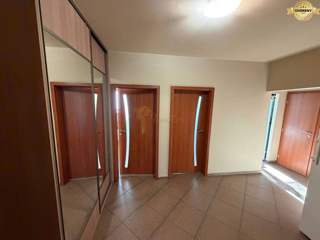 Celková výmera bytu 82 m2 + lodžia + pivnica, nachádza sa na 7 p./8 panelového domu s výťahom. Na prízemí je spoločná miestnosť na odkladanie bicyklov a kočíkov .