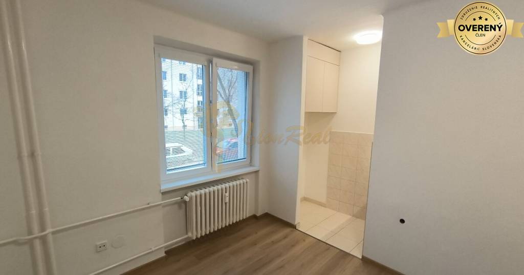 Výmera 22,5 m2 + pivnica 3,5 m2, nachádza sa na zvýšenom prízemí/3.