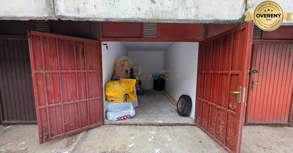 Výmera 13,5 m2, nachádza sa v radovej zástavbe garáží, otváranie dvojkrídlová brána. Pozemok pod garážou je v osobnom vlastníctve. Aktuálne je v procese zavedenie elektriny do garáže, čiže pri predaji bude v garáži aj elektrina.