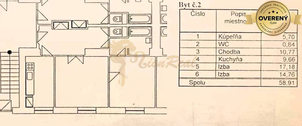 Výmera 62,68 m2 vrátane pivnice 3,73 m2, nachádza sa na zvýšenom prízemí/4.